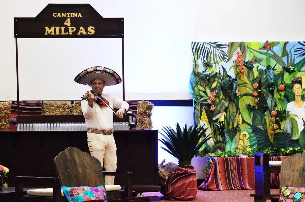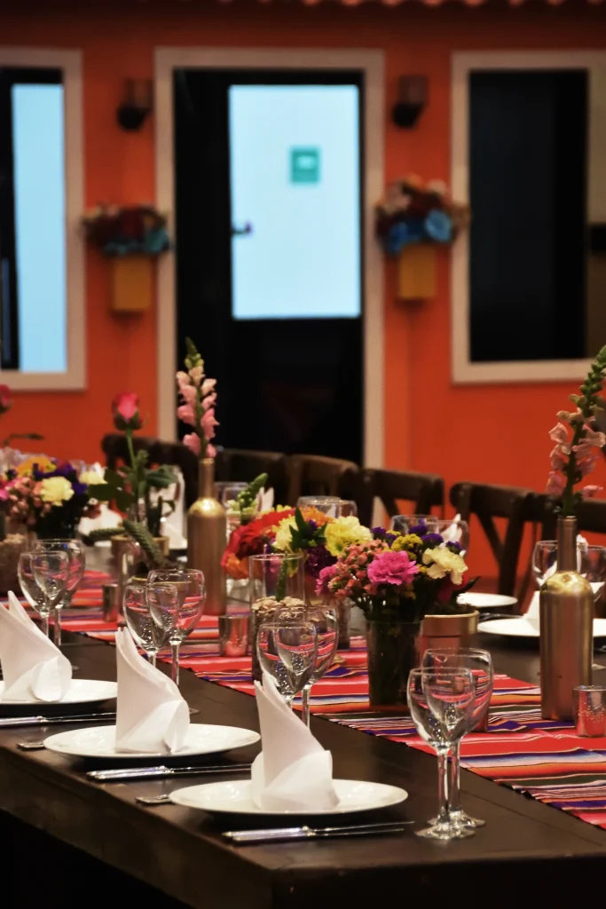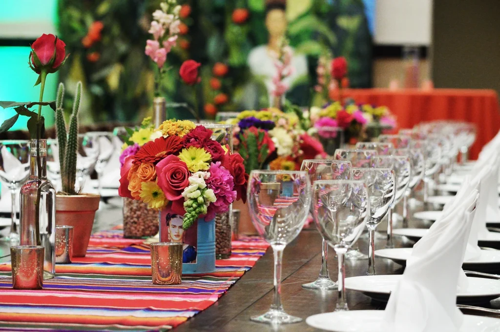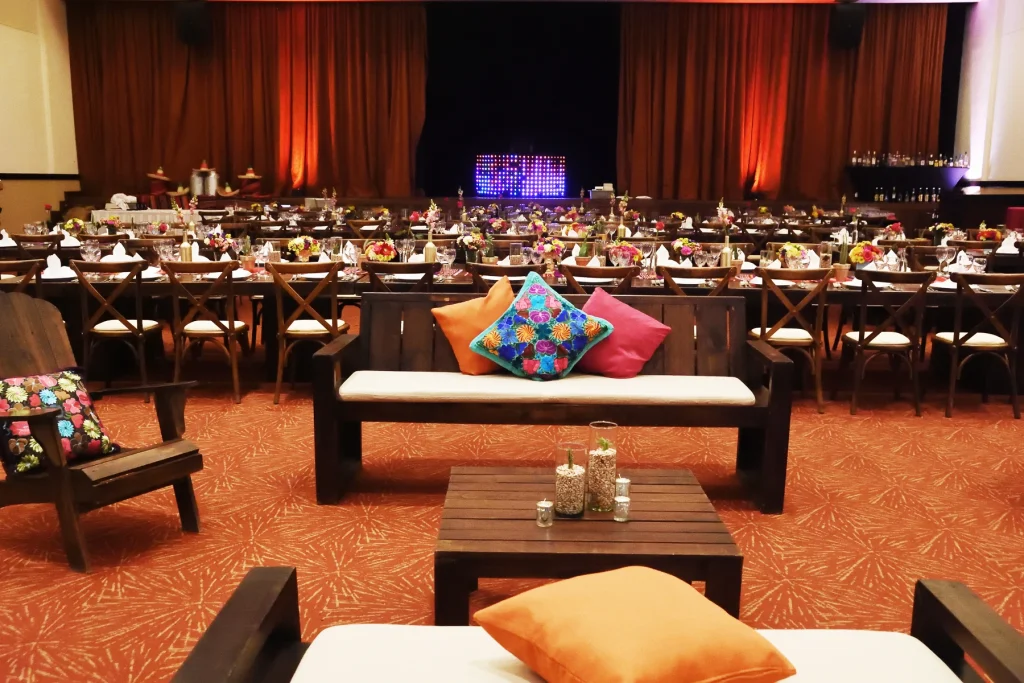 Held on a beachfront patio surrounded by palms, the space came alive with papel picado overhead and striking décor at every turn. Round tables dressed in dark purple linens paired with black chairs and moody lounges featuring catrina pillows. Centerpieces combined black chandeliers, colorful florals, and sugar skull bases. Guests were welcomed by elegant catrines and a catrina in a flowing floral gown. As one of Mexico’s most meaningful traditions, this celebration honored heritage with style, emotion, and a distinctly festive spirit ideal for an incentive group experience.