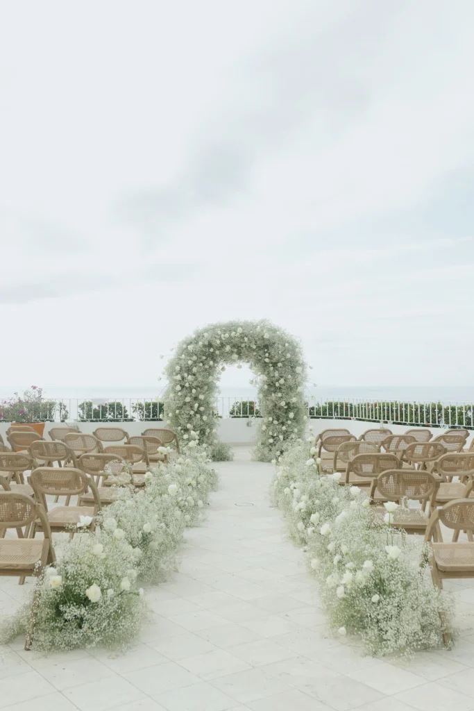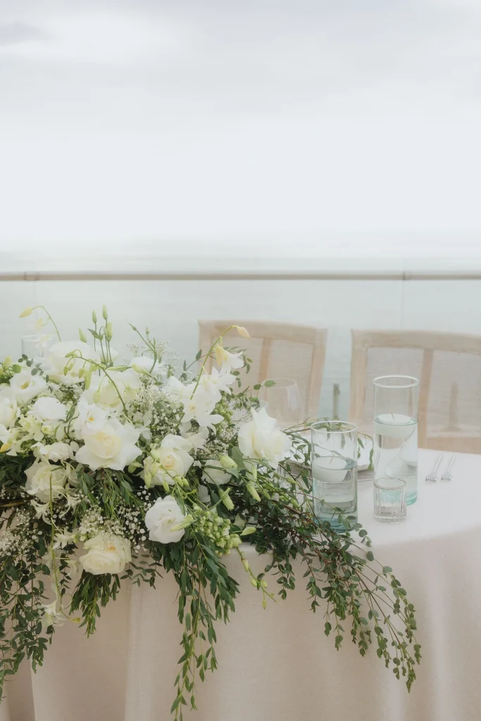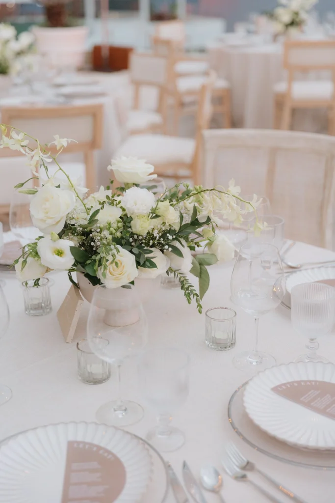 Iris and Jeremy’s wedding was a vision of elegant, airy beauty, framed by romantic white florals.
